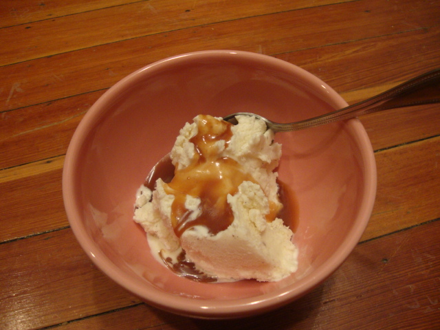 Adam headed to a coffee spot to study after the grocery, but I knew my best course of action was to get myself into my pjs and tuck into a large bowl of vanilla bean with caramel sauce.