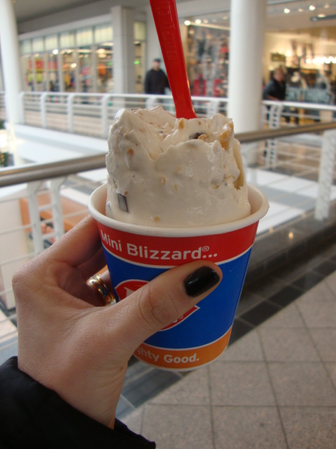 hehe a mini blizzard is a 'refreshing' winter treat. more people need to eat cold foods in the winter time, theres something really yummy about it thats unexpected. and if u get too cold just have a tea after and it evens the temperature back out :)… or in ur case, hot weather works too 😉