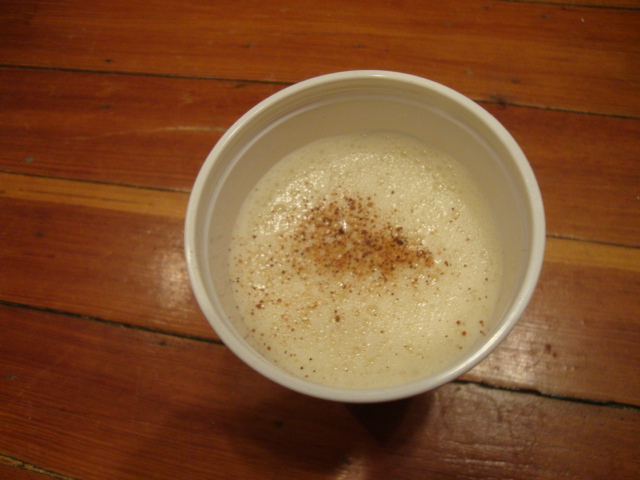 Two servings of Silk Soy Nog with nutmeg.