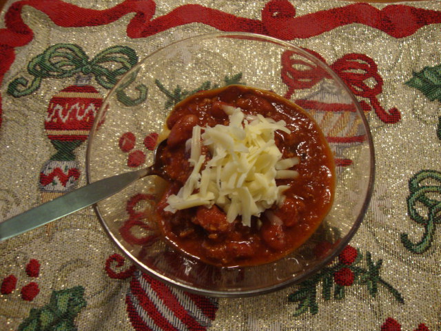 Then it was time for the final prep for our big Christmas Eve party.  A family friend who knows we usually just have to scrounge on the 24th brought over turkey chilli with kidney beans for dinner.