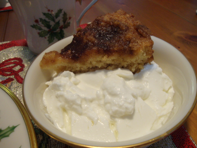 and a 0% Plain Chobani with a slice of coffee cake.