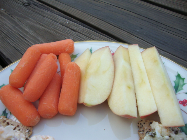 Apple slices and baby carrots,