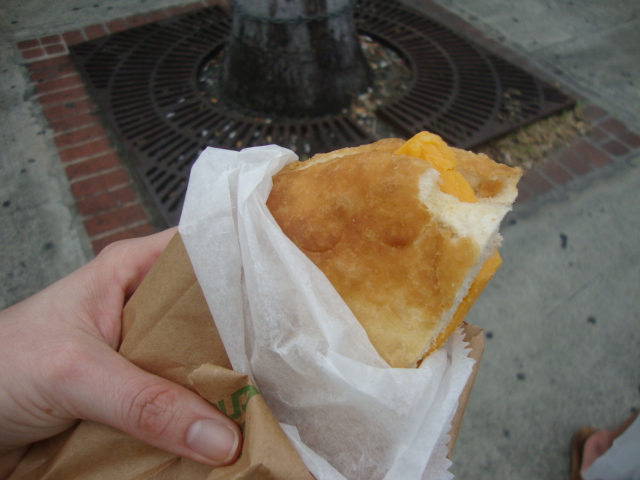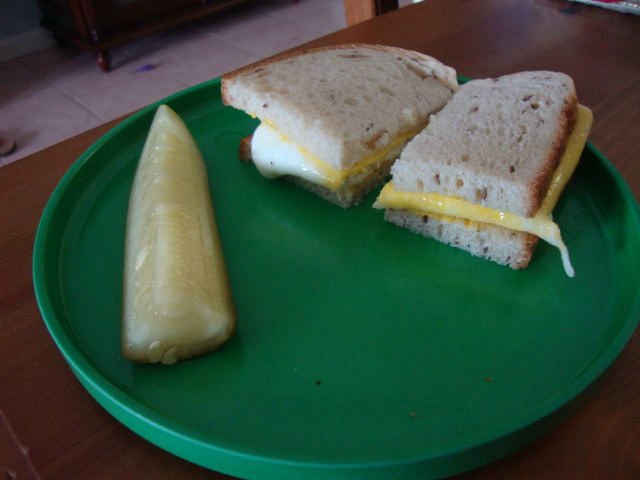 My dad made me a small fried egg sandwich for breakfast,
