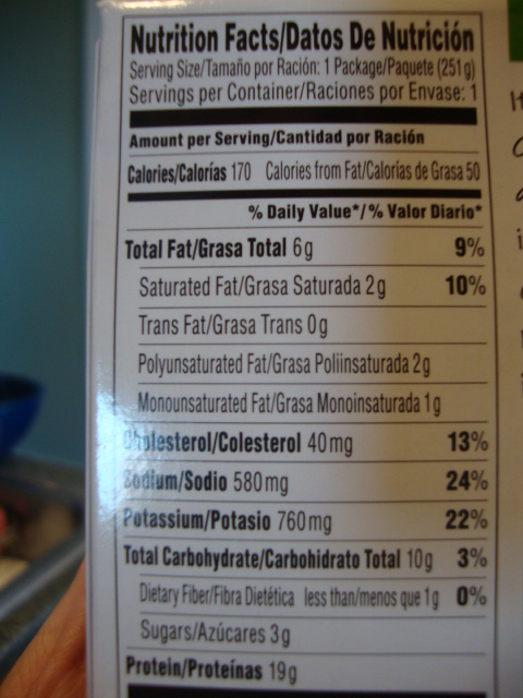 This frozen meal had a disturbing amount of saturated fat for only 170calories, but also an impressive amount of protein and potassium.