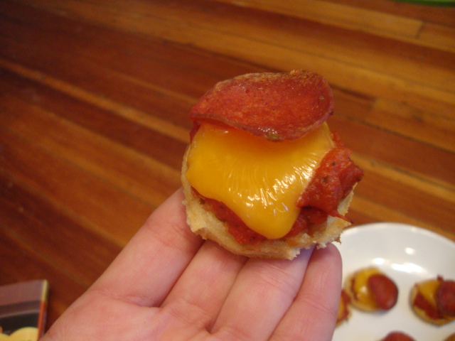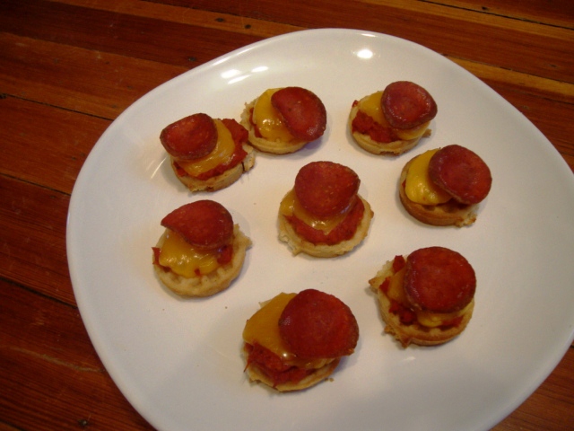 I toasted up a serving of Van’s Mini Waffles, topped with marinara, 50% reduced sharp cheddar, and turkey pepperoni, then baked at 400* until melty and crunchy.
