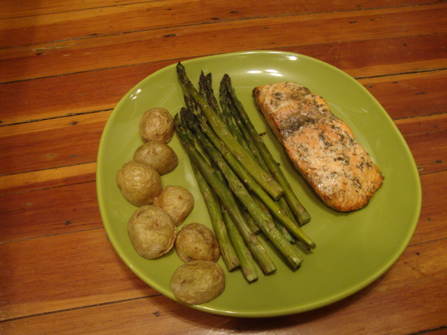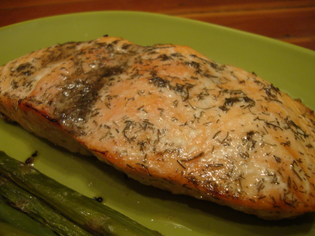 My generous parents know we’re too poor for healthy seafood (and I’m too much of a girl for sardines), so they gifted us with “charge some salmon to the credit card one night, and marinade it in the maple dill dressing from your stocking” for Christmas. <– Yes, this was a stocking gift; and yes, they’re a little crazy.