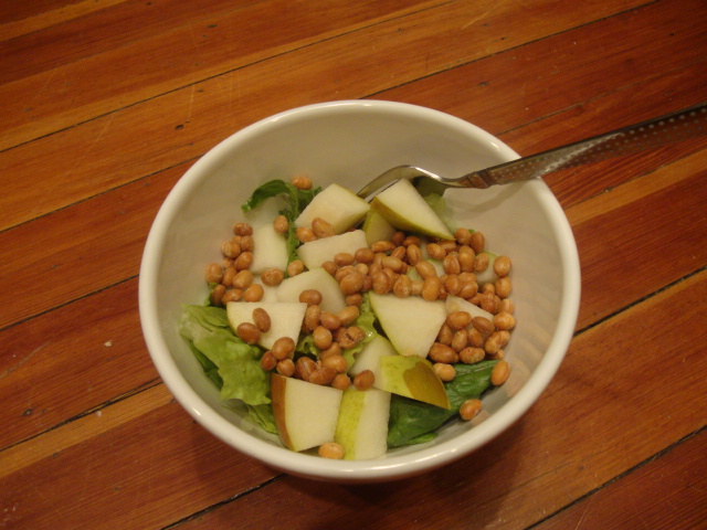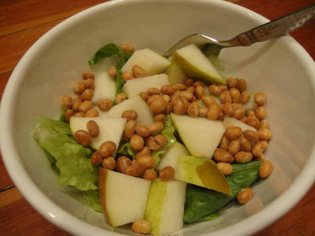 I had a romaine base with chopped pear, soy nuts, and low-fat poppy-seed dressing.