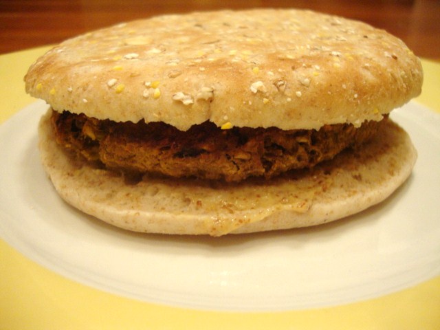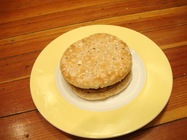 For lunch I packed a veggie burger on an Arnold Multi-Grain Sandwich Thin spread with a bit of horseradish mustard.