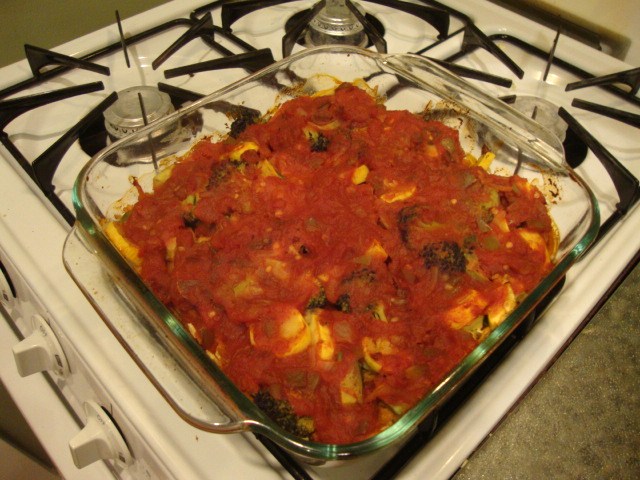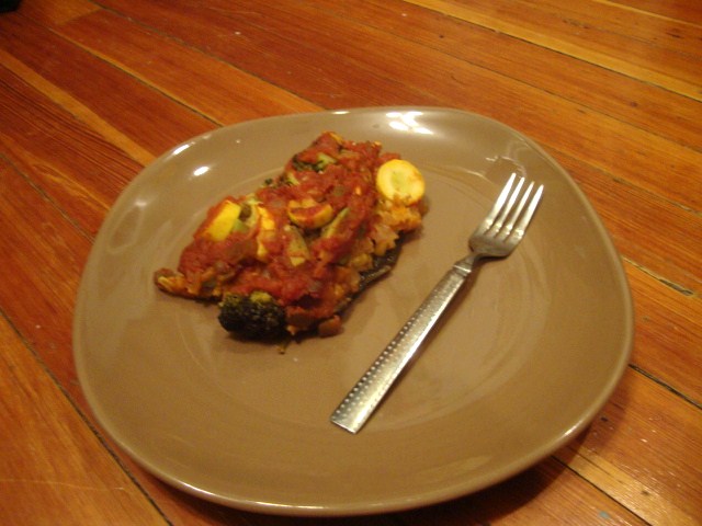 • 1.5 cups pre-cooked, chopped veggies  (Use whatever you’ve got leftover, but we used yellow squash and broccoli and that’s what I’d recommend if you’re starting from scratch.)