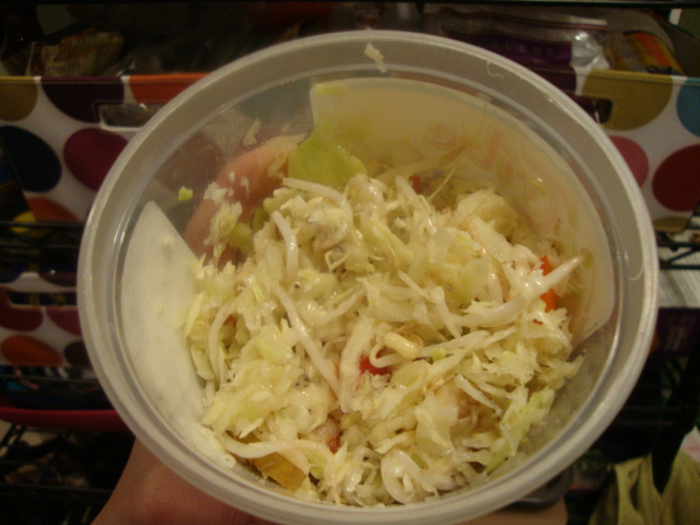Lunch was random and quick. A leftover serving of Asian cole-slaw,