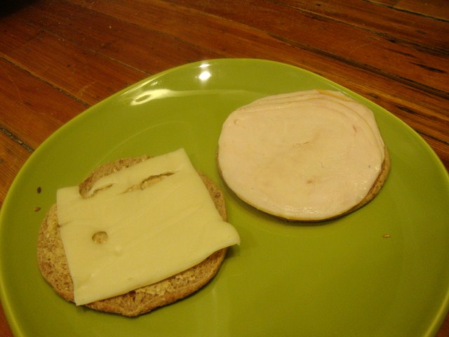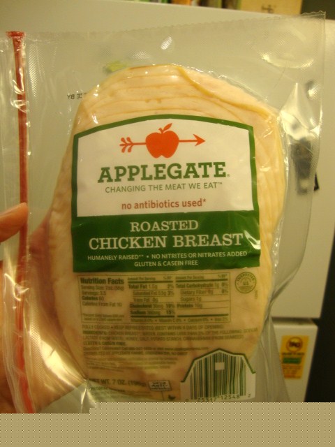 Chicken actually, this was a Sandwich Thin with horseradish mustard, 2% swiss, and Applegate Farms Organic Roasted Chicken Breast (more on that in a sec).
