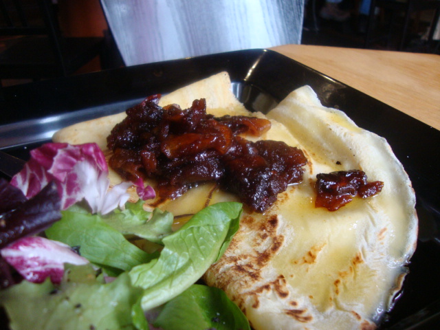 For breakfast the three of us split two crepes, one sweet and one savory.
