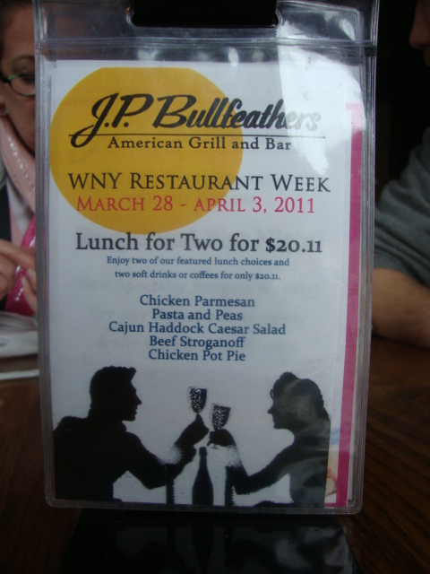 For lunch we went back to an old favorite, JP Bullfeathers, and were greeted with the good news of Restaurant Week.