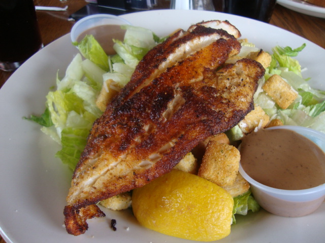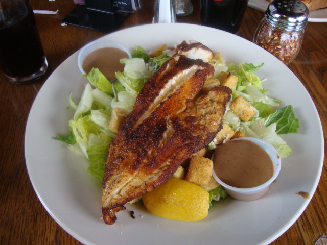 I went with the Cajun Haddock Caesar Salad, with balsamic on the side subbed for the dressing.