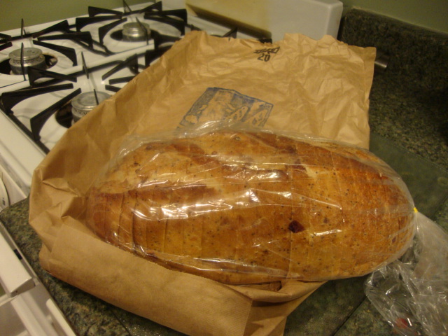 On cranberry poppy seed bread from a loaf my grandma bought us at The Bakehouse last week.