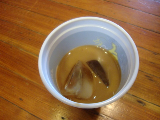 Yesterday I grabbed a cup of (unsweetened) butter toffee flavored coffee from the gas station, and this morning I mixed it with Silk Vanilla Almond Milk and maple syrup over ice.