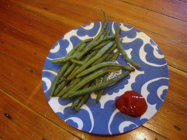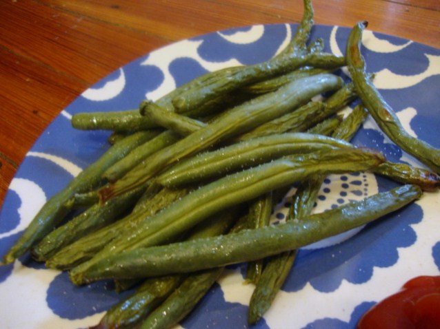 After my housekeeping trip to campus – my schedule next semester looks crazy!  I register on Thursday so please keep your fingers crossed for me – I baked up a plate of green bean fries.