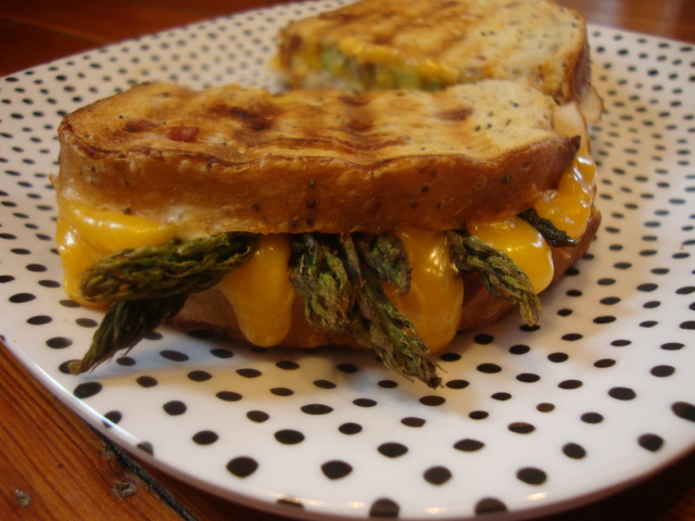 Making pressed sandwiches on our George Foreman grill has been our “thing” this year, and this one included roasted asparagus!