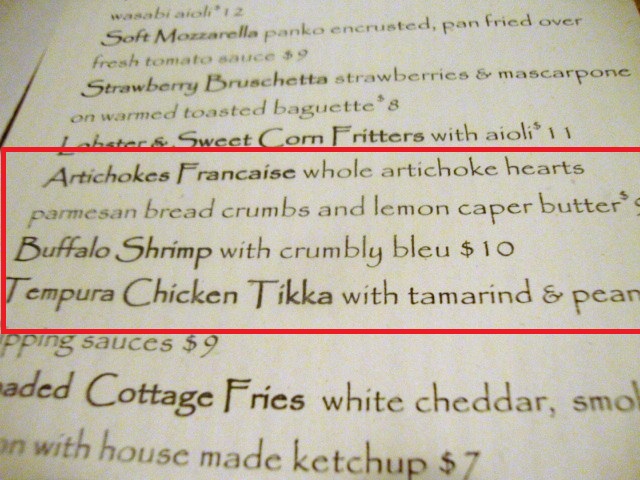 The inside looks fun and inviting, and we always kicked ourselves for not walking over there last year, but after tasting the food it appears we didn’t miss out on much. The meal wasn’t terrible, and there were highlights, but overall it was disappointing. Buffalo restaurants all seem to have menus that read like New York hot spots and food that tastes like TGIFriday’s. But it was fun to have a Wednesday night date with the husband regardless.