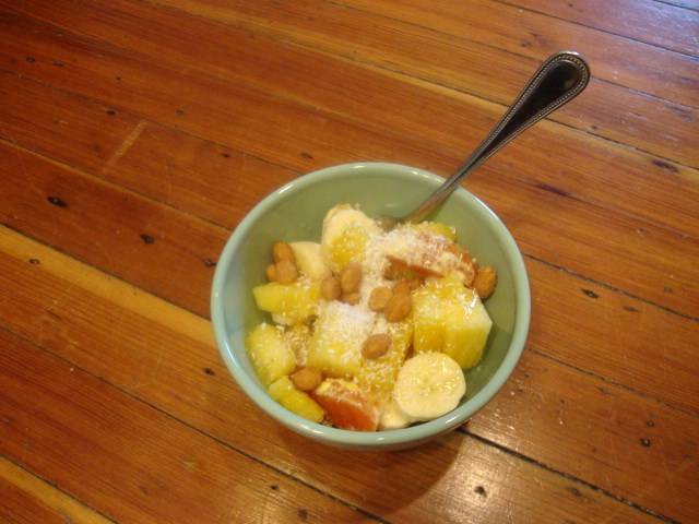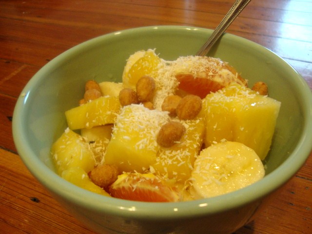 This was a mix of pineapple, Cara Cara orange, banana, honey, unsweetened shredded coconut, and a few honey peanuts.