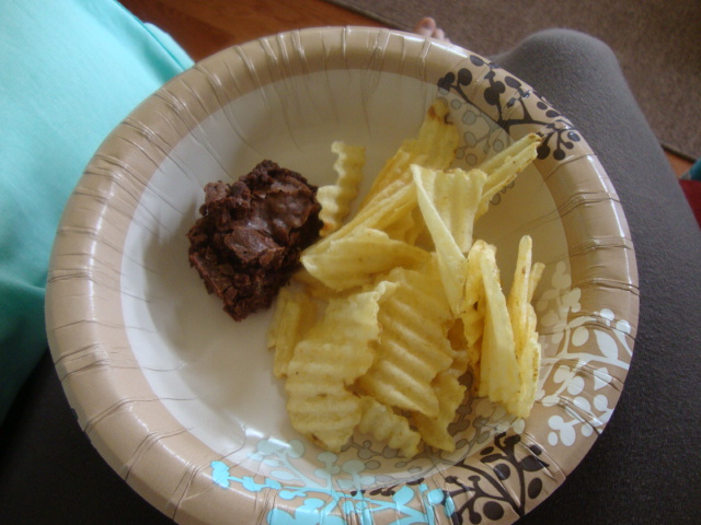 I also had a cinnamon brownie (we baked them Thursday night to bring down) and some Ruffled for dessert.