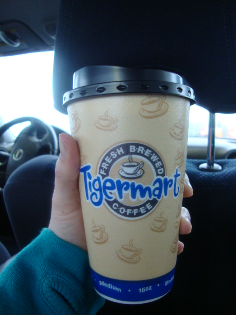 We stopped for gas on the way home and I grabbed a (half sweetened) coffee.