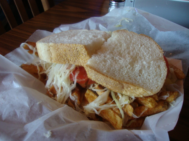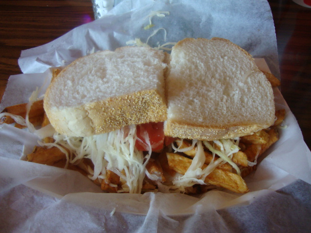 The bread was boring (and abandoned halfway through), but the slaw and fries were perfectly vinegary. I’d probably never want one again, but it was fun to try.