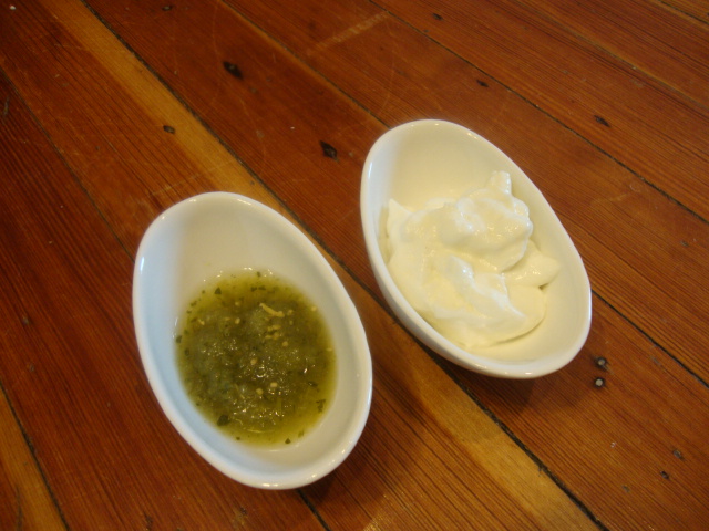 Plus plain 0% Oikos and green salsa for dipping.