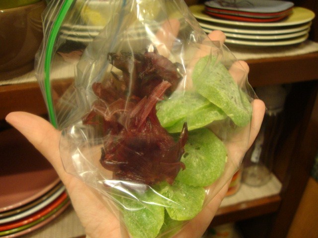 I packed some dried kiwi and hibiscus for sweetness and chew,