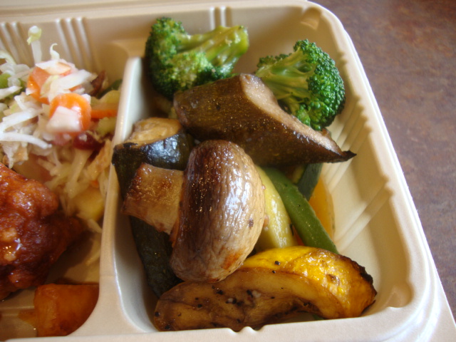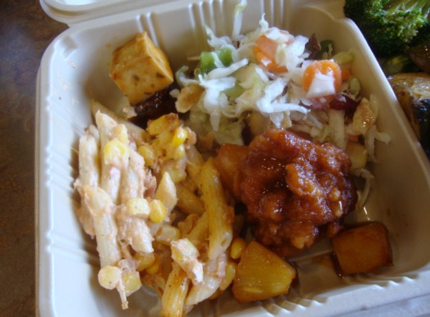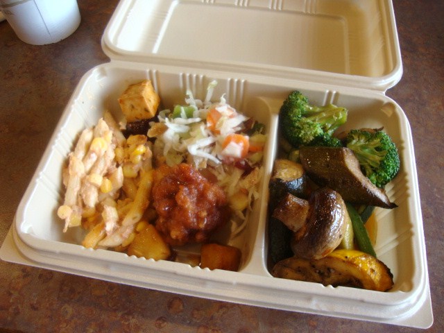 I know we should try someplace new, but we love all the options and the price is right.  I’d much rather take a bunch of little different bites than have one choice in bulk.  Today I got a random mix of tofu, chicken, and slaw,