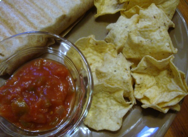 Plus a side of scoops tortilla chips with spicy salsa for authenticity.