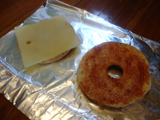 I packed a toasted Bagel Thin, topped with a slice of 2% Swiss and Crofter’s Strawberry Fruit Spread,