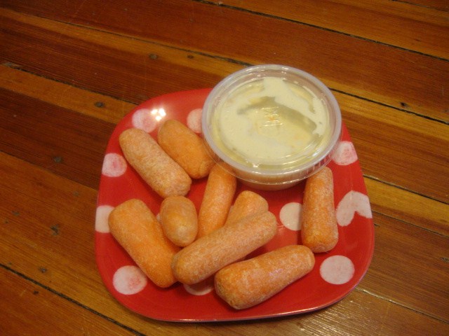 When I got home this afternoon I made myself a plate of baby carrots with blue cheese dressing for dipping.
