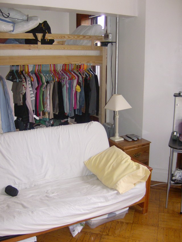 This week’s WBW is about the NYC apartment I shared with the husband. Adam and I actually lived together in college, but this was our first “real” apartment, the one we had to pay for on our own. Apartment is a little generous of a term though, this was a studio. For those of you who’ve never been poor teachers in New York City, studio = room.