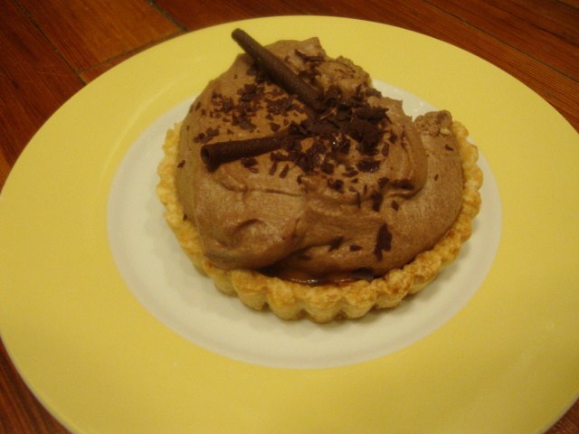That’s a caramelized macadamia nut and chocolate mousse tart that Adam brought home.