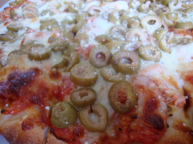 That’s a bruschetta pizza topped with extra green olives, the best pizza topper ever.