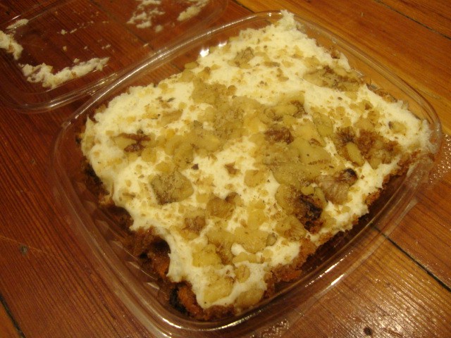 The half a pizza pretty much covered all my food groups (what?! dairy, grains, veggies…) but I did sneak in one more veggie with a slice of carrot cake from the co-op.