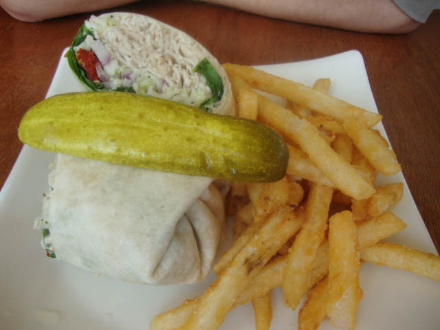 and the California Turkey Wrap with coleslaw, spinach, sun-dried tomatoes, onions and a chipolte aioli.
