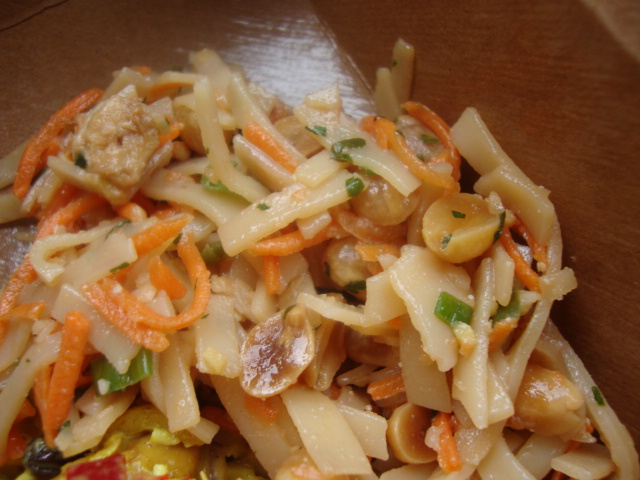 I knew my dinner was going to be veggie-heavy so I loaded up on protein. Pad Thai noodles,