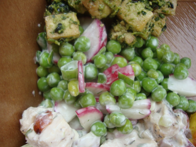 and pea and radish salad. That stuff in the corner was Adam’s tofu.