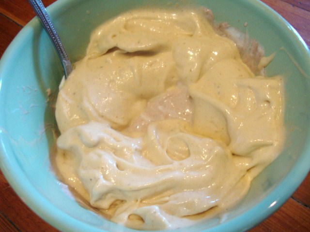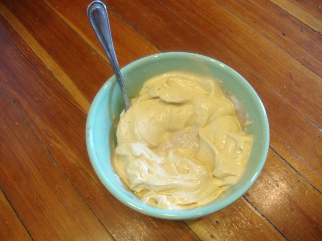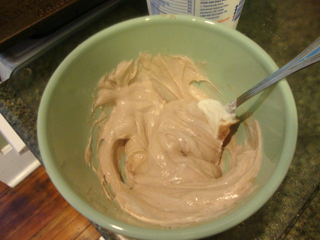 I whisked together 1/2 cup of 0% Fage with half a packet of cocoa mix,