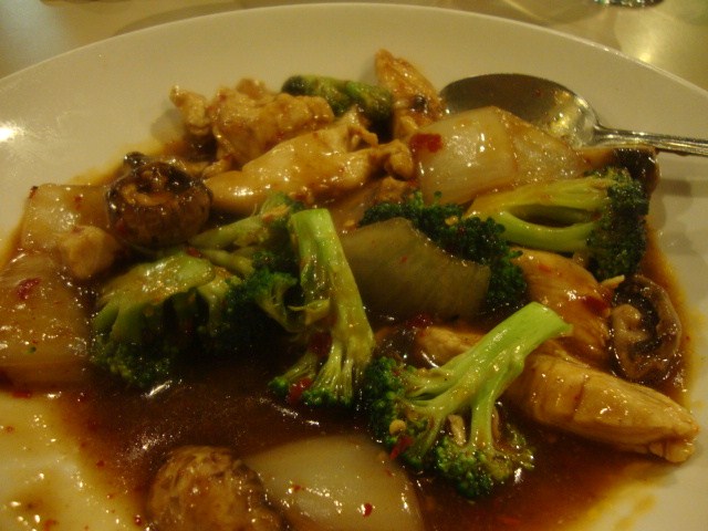 I strayed from my go-to order of broad rice noodles and went with Pad Krapow – chicken with spicy basil sauce.
