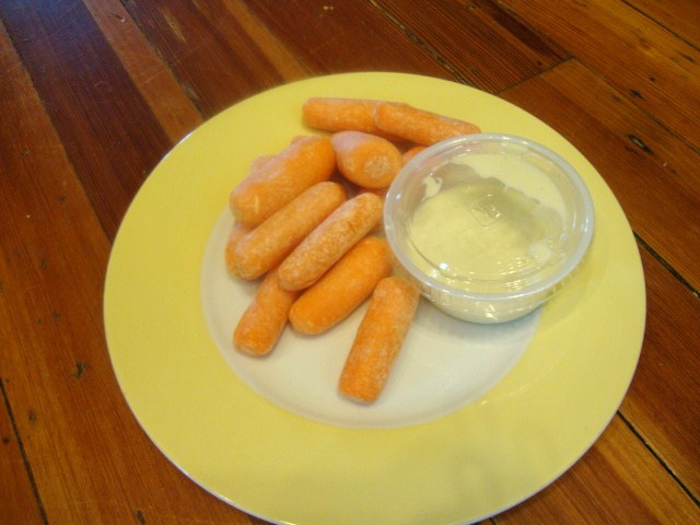 And a plate of baby carrots with blue cheese dressing when we got home.