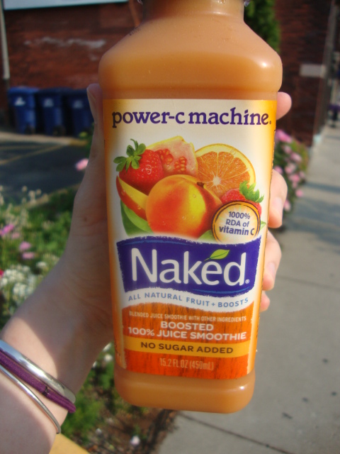 I tend to be a little suspicious of Co-op produce since they’ve given me fruit flies in the past (and especially because my spongy plums were bought there) so I ended up buying a Naked Juice to get my fruits for the day.