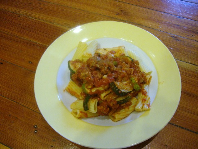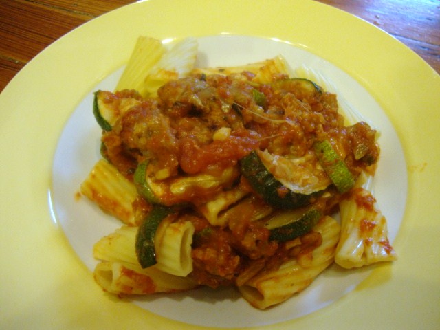 A healthy balance of carbs and protein that will hopefully help Adam power through his test tomorrow.  Plus, roasted zucchini just tastes good!
