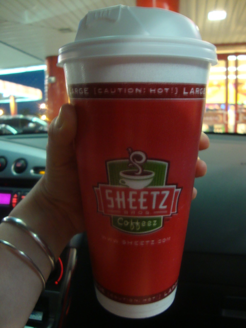 After dinner we had another late, rainy drive.  I bought this huge (half-sweet) coffee for the road.