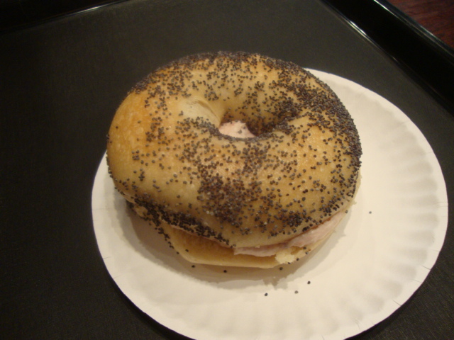 For breakfast we headed to Brodos for bagels.  Adam and I split a toasted poppy seed with strawberry cream cheese.