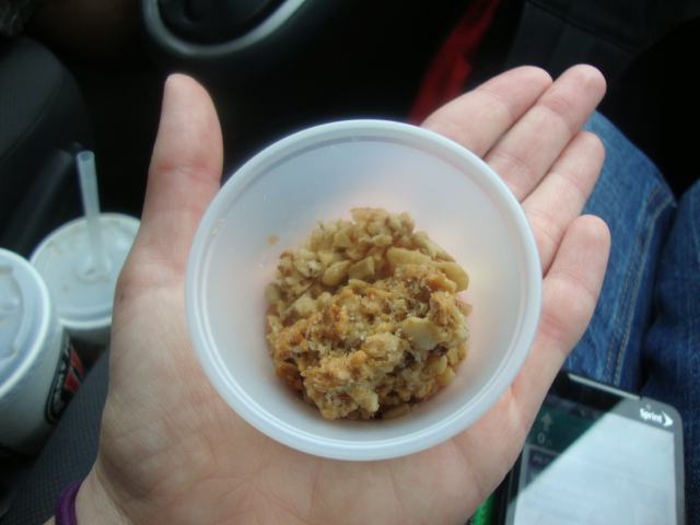 We ended our visit with two car-worthy destinations: Great Harvest and Whole Foods. Adam and I left GH with a fantastic loaf of bread (Adam’s already eaten 3 slices!) and a sample bag of granola that Kath kindly shared.