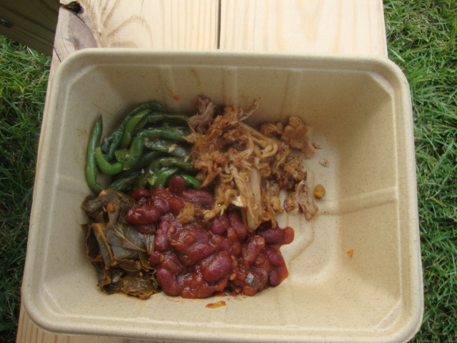 I ended up with a southern style feast – pulled chicken, collard greens, green beans, and bbq beans.