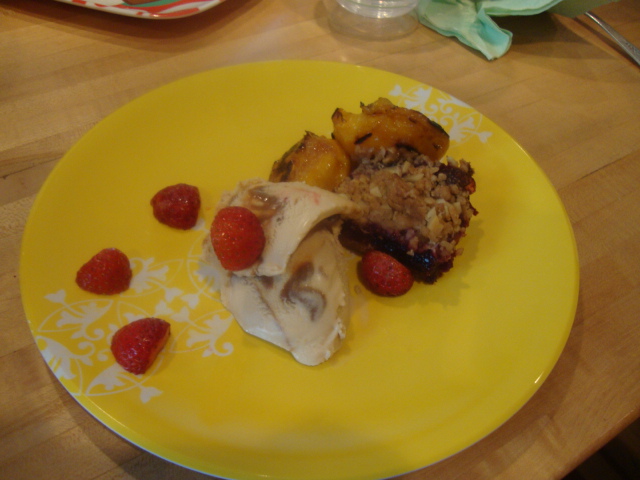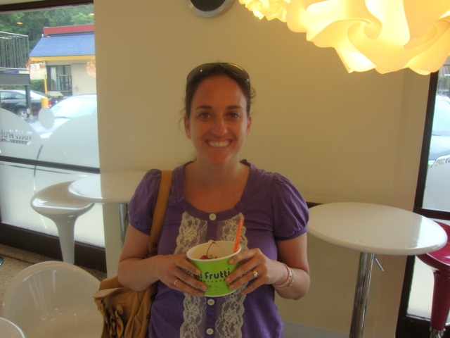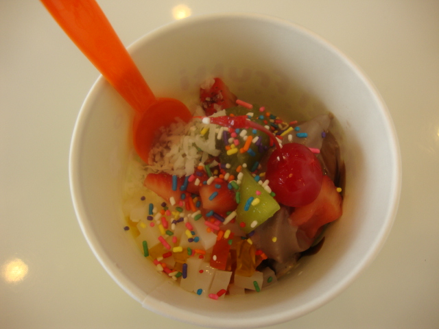 I self-served cheesecake/chocolate/cookies and cream topped with kiwi, strawberries, coconut, sprinkles, and rainbow jelly (<– like what’s in bubble tea, so fun!).